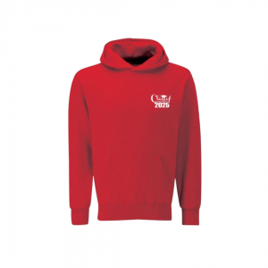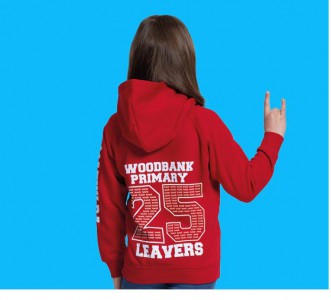 Red Poly/Cotton Hoodie School logo embroidered on left chest. Leavers 25 and class names on reverse If you would like to add your child's name or initials to the hoodie. Please add these to the comments section of you order.
