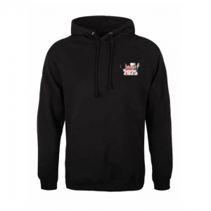 Black Poly/Cotton Hoodie Class of 2025 to left chest - white single colour print. Leavers 25 and class names on reverse