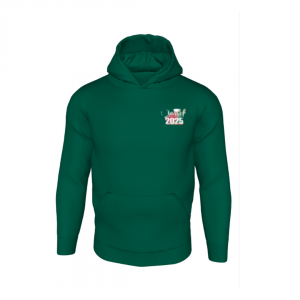 Bottle Green Poly/Cotton Hoodie Class of 2025 to left chest - white single colour print. Leavers 25 and class names on reverse