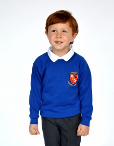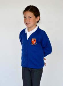 Royal Blue Poly/Cotton Hoodie School logo to left chest Leavers 25 and class names on reverse